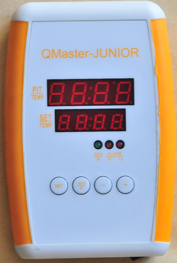 QMaster-Junior is temperature controller for most Wood,Pellet, Charcoal buring BBQ grill smoker pit. It is fully digital, it has programmable 4 different temperature stages. Its output is P.I.D. control of voltage instead of simply turning on or off the blower. This way the blower speed is tuned stepless, and temperature fluctuation can be as low as 1 F. There are 4 different fan adapters for different pits. Testimonials