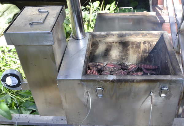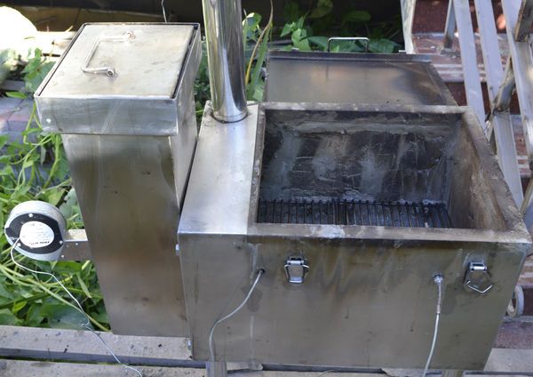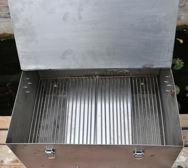 Smoker282 Grilling size, 14 1/2" X 19 1/2" or 282 Square Inches, made from 2mm SS, weight 55lbs, ex-work US$199. Surface mail cost US$150 |