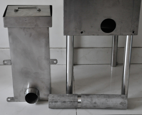 14 1/2" X 19 1/2"x 12 Double walls of 1 & 1.5 mm stainless steel 50 mm fiberglass Ex-works US$100 Surface mail US$100 |